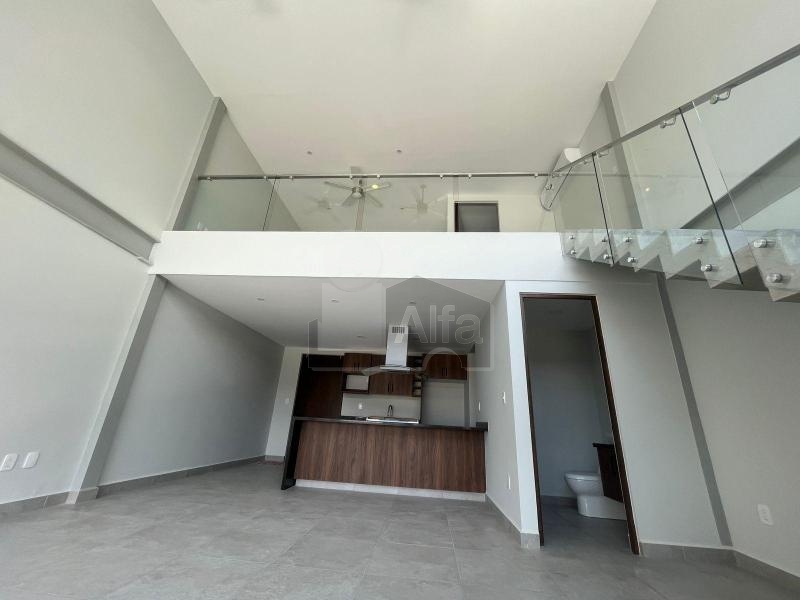 Loft de 76 m2 de doble altura ideal para pareja o 1 persona. 1 recamara con baño y vestidor, sala, comedor, medio baño de visitas, cocina integral, area de lavado y 2 lugares de estacionamiento.